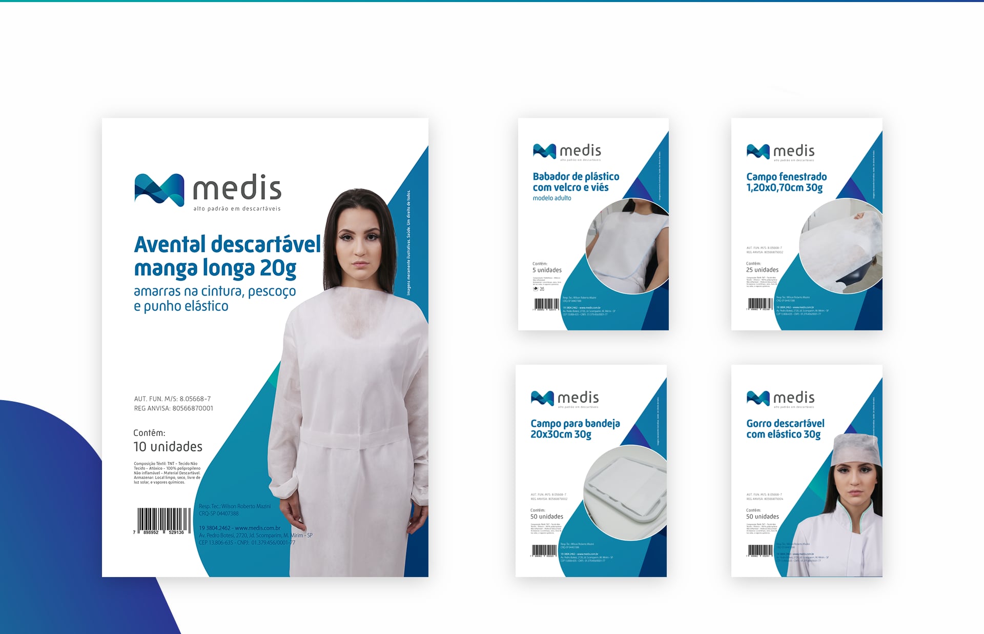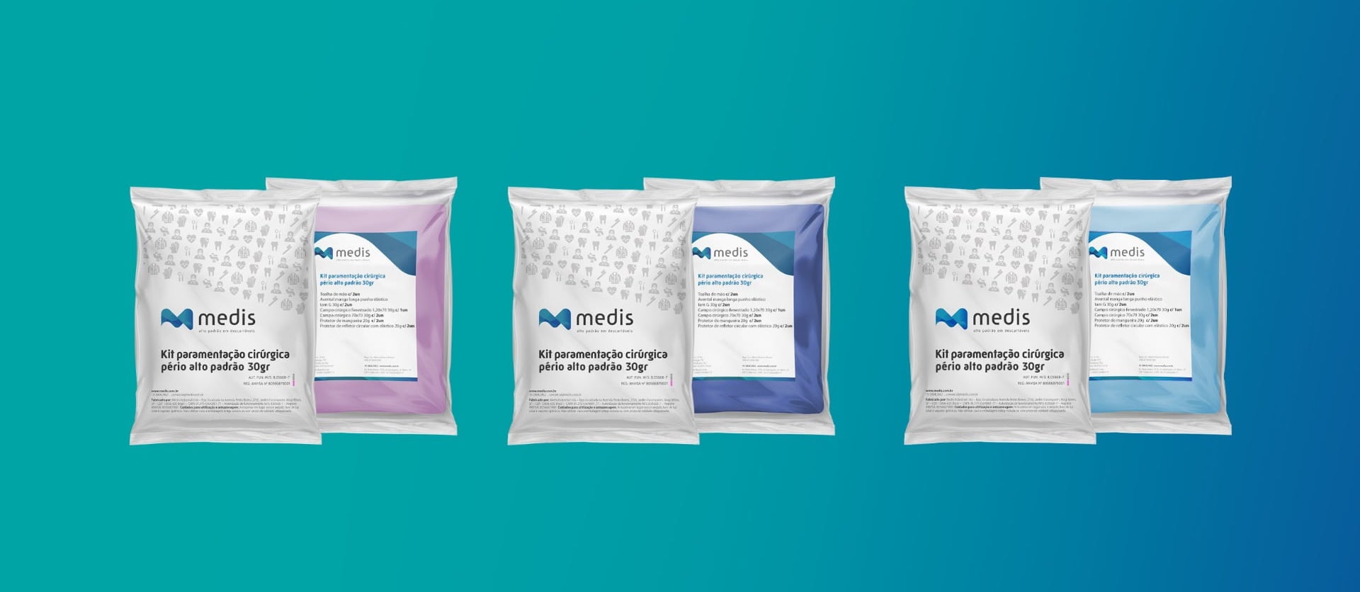 A medis é uma empresa que fornece produtos descartáveis para o setor médico, estes produtos seguem rígidos processos de fabricação, costura e esterilização e chegam aos hospitais e clínicas prontos para utilização. O desafio do projeto foi recriar uma marca moderna que representasse diversidade, por sua gama completa de serviços, confiança e ao mesmo tempo segurança, por se tratar de produtos utilizados em emergências.